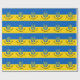 Wrapping paper with the flag of Ukraine, a blue and yellow flag with the Ukrainian coat of arms (emblem) with a trident in the centre, and a custom text template for your message