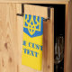Kitchen towel with the flag of Ukraine with the Ukrainian coat of arms in the centre and two customisable text templates for your message