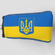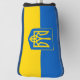 Golf head putter cover with the flag of Ukraine, a blue and yellow flag with the Ukrainian coat of arms (emblem) with a trident in the centre
