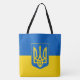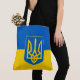 Tote bag with the flag of Ukraine, a blue and yellow flag with the Ukrainian coat of arms (emblem) with a trident in the centre