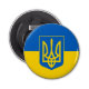 Round bottle opener with the flag of Ukraine, a blue and yellow flag with the Ukrainian coat of arms (emblem) with a trident in the centre