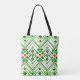 This tote bag has a Ukrainian-inspired design of diamond shapes, circles, and crosses. It is fashioned after their folk art.