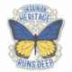 Amazing design featuring a butterfly with the flag of Ukraine and the quote "Ukraine heritage runs deep".