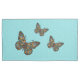 The wings, body, and antennae of a monarch butterfly are decorated with patterns found in pysanka, a traditional Ukrainian method for decorating Easter eggs. These include geometric patterns, plant motifs, and designs based on man-made agricultural objects in shades of red, orange, green, blue, dark grey, and white.
