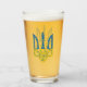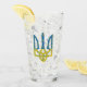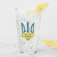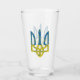 Textured Ukrainian national emblem trident tryzub in Ukrainian flag colours and stroke circle pattern