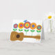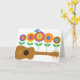 A horizontal image of a brown ukulele, with stylised flowers and a blue bird springing up from the ukulele.