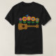 A horizontal image of a brown ukulele, with stylised flowers and a blue bird springing up from the ukulele.