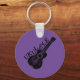 Black drawing with customised text. Custom ukulele keychains with purple background. Original design. Gift idea for ukulele lovers.