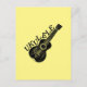Black drawing with customised text. Custom ukulele postcards with yellow background. Original design. Gift idea for ukulele lovers.
