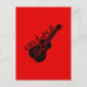 Black drawing with customised text. Custom ukulele postcards with red background. Original design. Gift idea for ukulele lovers.