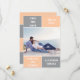 Ultimate grey and peach colour block wedding Save the Date card. The back includes a pattern with wide bands in grey and peach.