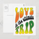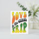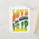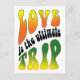 A fun, groovy saying that was a favourite of peace loving hippies in the sixties: Love Is The Ultimate Trip in vibrant colours, psychedelic font and trippy retro word art lettering style.