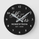 Ultra chic custom Mr and Mrs wall clock for newly weds. Elegant script typography template with family name and date of marriage. Classy presents for just married couple or bride and groom. Chic black and white design home decor. Personalised decor for unique kitchen, office, living room, bedroom etc. Add your own established year and surname. Customisable colours.