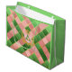 Ultra Chic Preppy Pink Green Argyle Monogram Crest Large Gift Bag