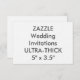 Custom Personalised ULTRA-THICK Wedding Invitations - 5” x 3.5". The ultra-premium selection, this triple-thick, hand-pressed paper is suitable for your biggest events and most special occasions. Available on select sizes. 360lb, 42 point thick card. (Luxuriously thick and therefore may require additional postage). MADE IN THE USA. Big bulk buy multi purchase discount savings on invitation cards, up to 50% off your purchases for multiple item orders. Zazzle Wedding Invitations - Create, make, design your own custom wedding invites from this fully customisable, personalised Zazzle invitation card design template blank. High quality, full-colour, full-bleed printing on both sides with Standard or HIGH-DEFINITION print options. Size Options: 5" x 7", 4.25" x 5.5", 3.5" x 5", 4" x 9.25", 5.25" x 5.25", 4.5" x 6.25", 5.5" x 7.5", 6.5" x 8.75”. Orientation Options: Vertical (portrait) or horizontal (landscape). Finish Options: Semi-gloss, Matte, Ultra-thick, Laid, Linen, Columned, Felt White, Felt Ecru, Kraft, Pearl Shimmer, Champagne Shimmer & Metallic Silver. Card Shape & Style Options: Standard or Rounded Corners (all sizes); Bracket, Scalloped, Ticket or Tag (5” x 7” only); Circular (5.25” only). Standard white envelopes included, with upgrade options. Perfect for wedding invites, bachelorette, bridal shower, rehearsal dinner, save the date etc, and for any RSVP party invitations, such as anniversary, birthday, sweet sixteen and Quincenera; or for corporate event & exhibition invites - for photo, image, text, bride & groom, or your own unique personalised design creation.