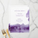 Adorable and editable wedding dinner menu template, beautifully romantic with elegant purple and ultraviolet watercolor splashes on white paper. A timeless design that's perfect for formal events in any season, editable with Name and Date.