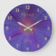 Ultra Violet Morning Glory Flower and Text Large Clock