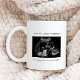 A simple ultrasound photo pregnancy announcement mug. This mug features a minimalist typewriter text and photo. The photo is for placement purposes only and can be replaced with any photo of your choice. All text can be customised with any wording of your choice.
