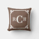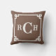 Umber Brown Reverse Chinoiserie Greek Key Monogram Cushion