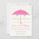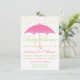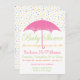Pretty and modern baby shower invitation with a lacy pink umbrella with soft sparkling star or rain drops. Easy to edit. Hand drawn illustration by Mcbooboo.