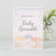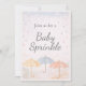 Soft pastel rain theme, muted blue peach and cream tones, watercolor style for baby sprinkle gatherings. Features umbrella illustrations with scattered raindrops on a textured background, ideal for hosting a light, seasonal celebration welcoming a new baby.