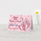 Sweet First Father's Day card for Father to Be with baby girl theme featuring a pink teddy bear riding in an umbrella, big dots and other special touches on card front and inside verse. Customise inside card with Your greeting and signature.