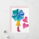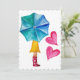 Umbrella Girl Watercolor Hearts Holiday Card