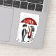 The boy and girl are depicted in a simple and endearing manner, with minimalistic details that enhance their relatable and universal appeal. The red umbrella acts as a symbol of protection, unity, and love, creating a heartwarming visual representation of togetherness.