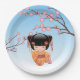 Ume Kokeshi Doll - Japanese Geisha Girl Blue Paper Plate