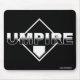 Striking Umpire text in chrome finish with a white home plate and baseball diamond. Perfect for amateur softball games.