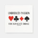 Duplicate bridge players will enjoy this paper napkin with the four card suits along with the following bridge saying: "Unbridled Passion For Duplicate Bridge". Make others do a double-take at your next bridge event with this memorable duplicate bridge attitude paper napkin!