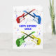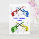 A beautiful birthday card for an uncle. Electric guitar colourful art with a music scale in the background. You cannot have too many guitars. A very cool guitar birthday card,celebrates the energy and sheer fun of this musical instrument. A perfect birthday card for guitarists and music lovers.