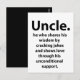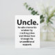 Uncle Inspirational Funny Quote Typography Uncle Postcard designed by Nisha Prabhu. Need a laugh and some inspiration? Send this funny uncle postcard featuring a hilarious typography quote that will bring a smile to your favourite uncle's face. Perfect for birthdays, holidays, or just because. Show your uncle how much you appreciate his wisdom and humour with this unique and eye-catching design. Order now and make his day!