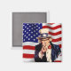 Square magnet with a vintage 1940s image of Uncle Sam on the America flag. See the entire Patriotic 40s Magnet collection in the PARTY FAVORS section.