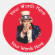 This custom sticker is decorated with an image of Uncle Sam and can be customised with names, dates, etc.