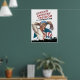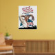 A WWII vintage poster showing Uncle Sam with rolloed up sleeves, removing his top hat in favour of a work cap. A background of war time factories.