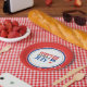 Simple, clean fourth of July party plates. Red, white, and blue with a cute graphic in the centre complete with an Uncle Sam hat. Five white stars adorn the red border. In the centre is a line from the Declaration of Independence to remind guests - and us - what we're celebrating.