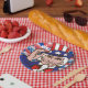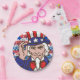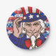 Uncle Sam on a stars and stripes background paper plate. Matching napkins and cups available.