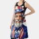 Smiling uncle Sam USA American Icon wearing an American suit and a waving American flag in the background