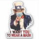 Cut-out stickers to promote the use of face masks during the Coronavirus pandemic | The design shows Uncle Sam wearing a mask, along with the words, "I Want You to Wear a Mask." Encourage others to do their part and wear a mask.