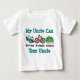 An uncle who is a triathlete will love seeing his niece or nephew wearing triathlon support t-shirts, buttons and more apparel and gear with a design of a pair of goggles, a bike and a pair of sneakers and the words My Uncle Can Outswim Outbike and Outrun Your Uncle. Click on the following link to see all of our cute and funny Chrissy H.