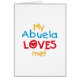 My Abuela Loves Me T-shirts, cards, stickers, bodysuits bags, and more with colourful red, yellow, and blue text and heart design. These Abuela Loves me apparel and gift items will make your abuela smile!