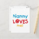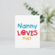 Nanny Loves Me T-shirts, cards, stickers, bodysuits bags, and more with colourful red, yellow, and blue text and heart design. These Nanny Loves me apparel and gift items will make nanny smile!