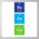 Barium Zinc Gallium, what does that spell? BaZnGa. Written using elements of the periodic table. The ideal gift for chemistry students and other geeks!