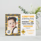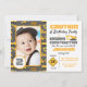 Cute under construction photo birthday party invitation. Grey, yellow and white colour scheme with construction truck, caution sign and construction cone pattern. Customise the text and photo!
