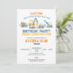A beautiful invitation featuring adorable construction trucks and diggers in watercolor - a fun way to celebrate the birthday of your little ones.