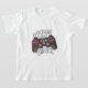 The t-shirt feels and looks great quality, a good thick cotton. It will be a little big for my son, but that means he will be able to wear it and not out grow it too soon. The print was as described on the order when personalised. True size, shape and colour T-shirt- thanks.