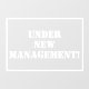 This "Under New Management" Window Cling Graphic is bold enough to announce your change of business ownership. Company takeover or new owners notice. White on clear background.