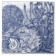 In tones of dark navy blue and white, an underwater ocean scene reveals myriad sea creatures including a mermaid bunny ("merbit"), shells, sea weed, fish and coral. Adapted from my hand painted, full colour ceramic tile mural, this tile is piece #6 of the mural. Eight other tiles complete the mural, all available on Zazzle, for you to construct and install your own under-sea tile mural. Also great to use individually, as a decor accent or trivet! Perfect for a beach house or coastal / marine decor. The blue and white theme is timeless and beachy! Whimsical, unique artwork & design by Tuzi Williams.