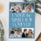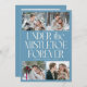 Modern and elegant holiday card for the newlyweds celebrating their first Christmas together as husband and wife featuring a bold text that says "Under the Mistletoe Forever" with 4 photos. The background is denim blue.